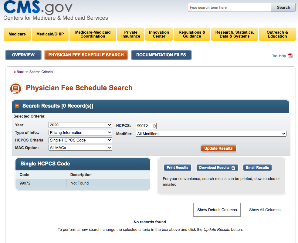 Unfortunately for many workers’ comp providers, the Centers for Medicare and Medicaid Services (‘CMS’ or ‘Medicare’) has neither adopted CPT 99072 nor assigned RVUs to this CPT code.
