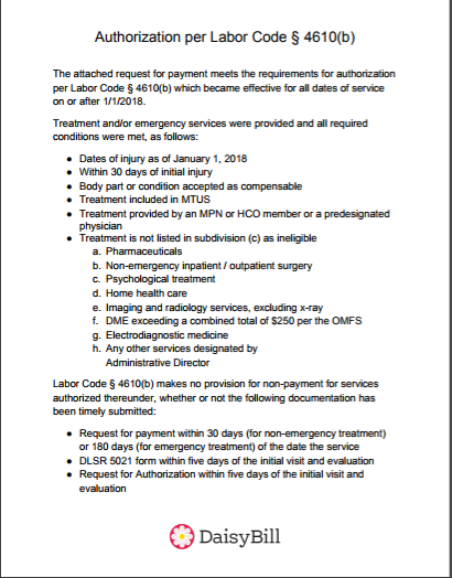 Automatic authorization adds a new dimension to the second review process. That’s because the claims administrator essentially has no ability to deny the recommended treatment. On top of that, billing timelines are very different — as are the rules regarding timely bill submission and the penalties for untimeliness.