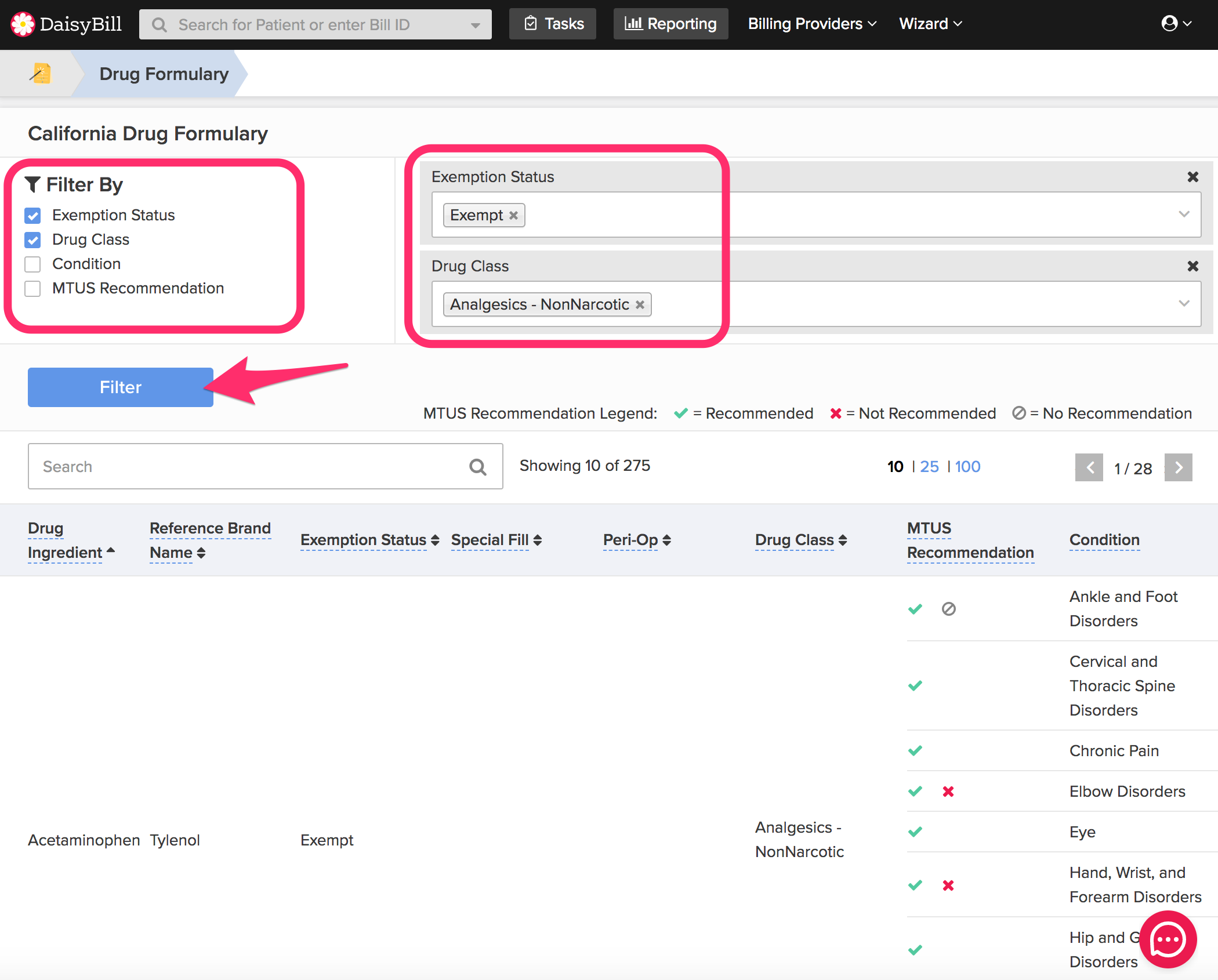 2. Apply the filters of your choice. You can choose to see only “exempt” drugs, for example, or drugs listed by class or patient condition.