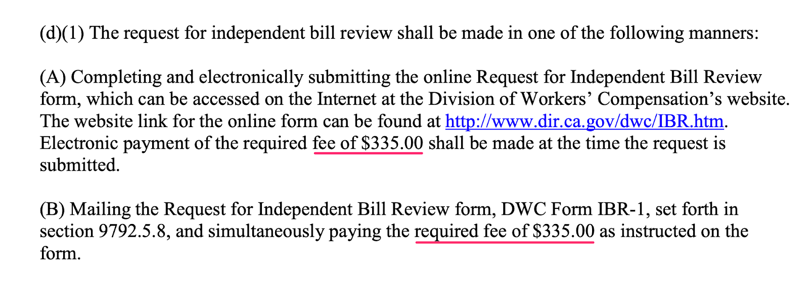 As if to ensure that any providers tempted to treat injured workers in California remain confounded by the process, the DWC maintains two separate resources which list two different, incorrect IBR filing fees.