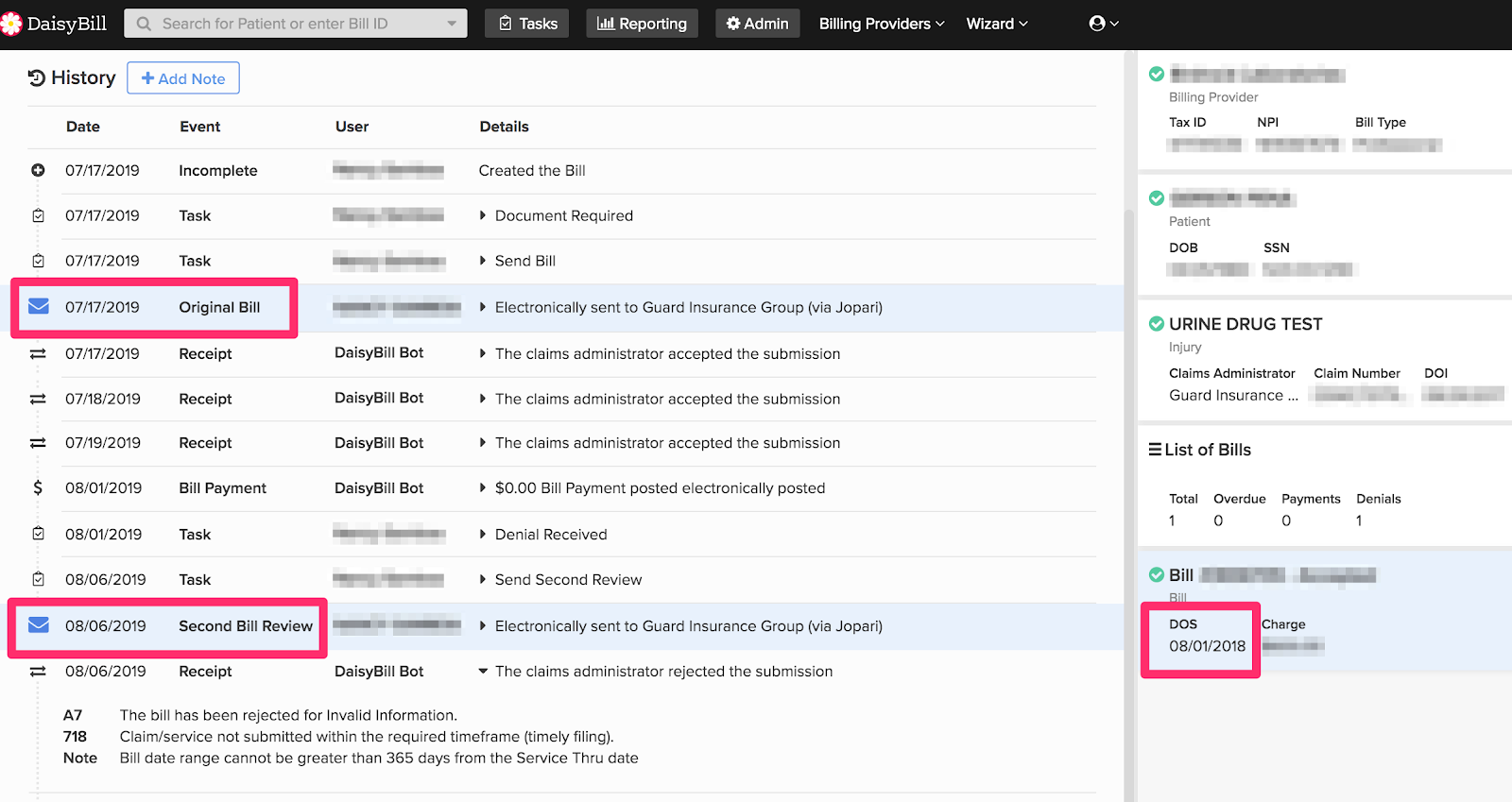 As the screenshot from DaisyBill shows, Guard rejected the second review appeal, on the grounds that the appeal was submitted after the 12-month timely filing deadline.
