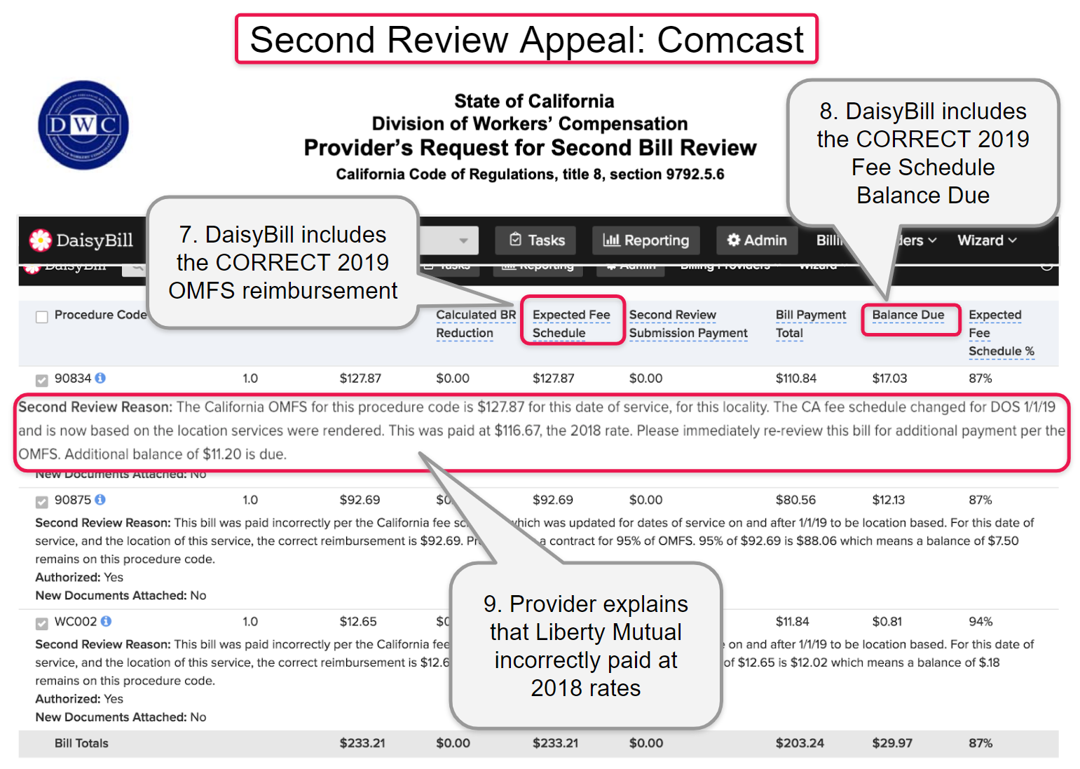 Annually, DaisyBill processes millions of workers’ comp bills and historically Liberty Mutual has been one of the most cooperative and responsive claims administrators. Unfortunately, even one of the best claims administrators makes mistakes and Liberty Mutual’s systematic incorrect reimbursement is costing California providers dearly.
