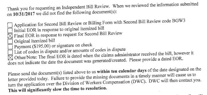 Maximus’ demand for the provider to produce a complete ‘final EOR’ demonstrates a significant lack of understanding of the workers’ comp billing and payment process. Such ineptitude confirms a long-held suspicion: as an agent of the DWC entrusted with resolving important disputes, Maximus fails the provider (again).