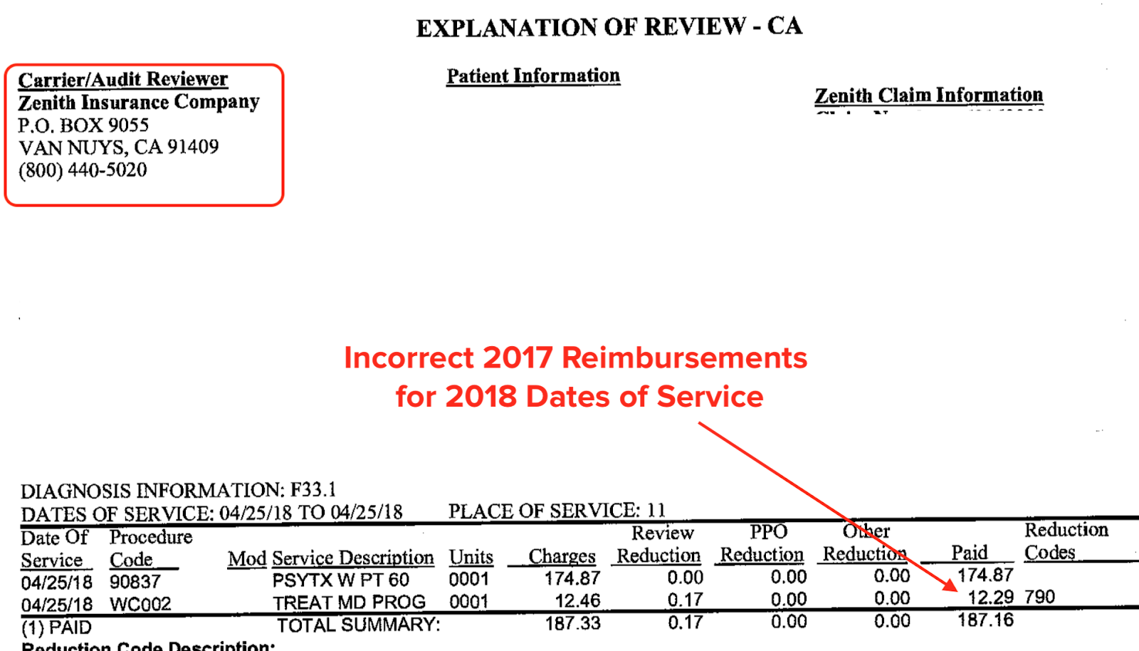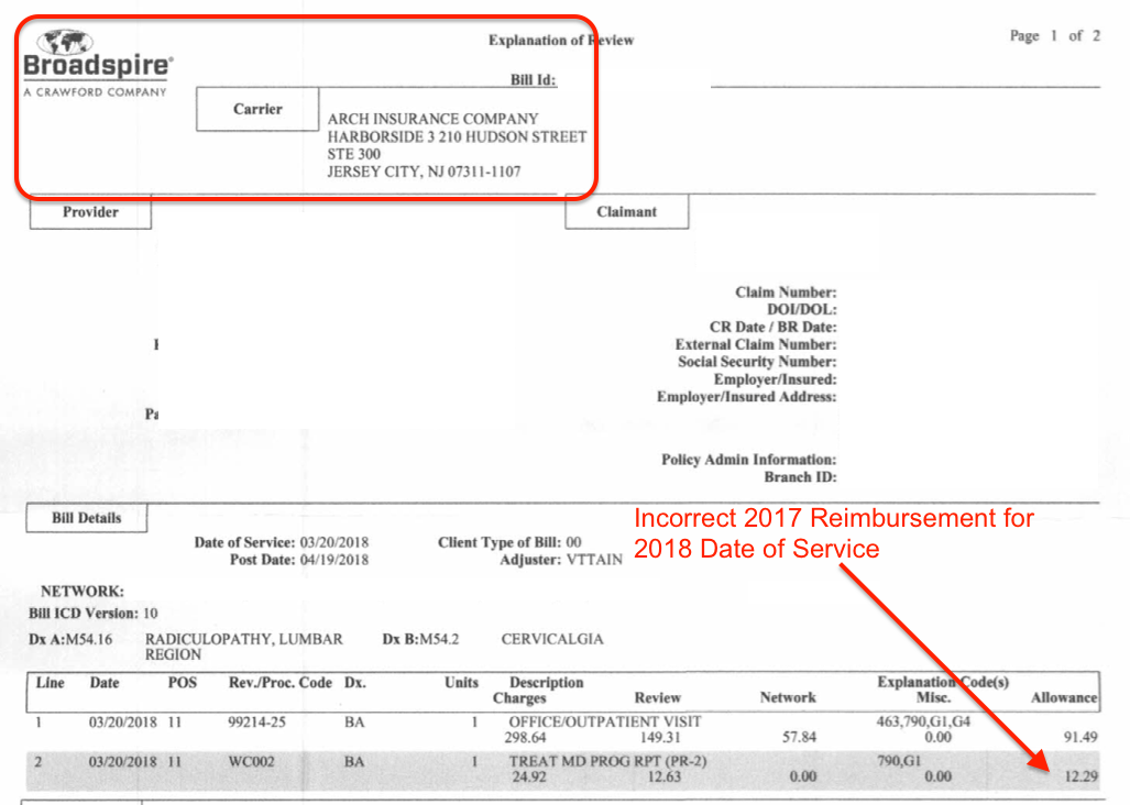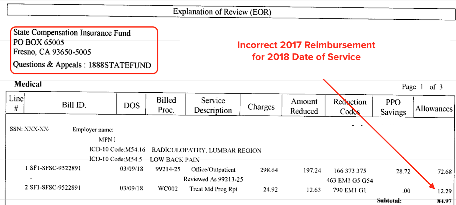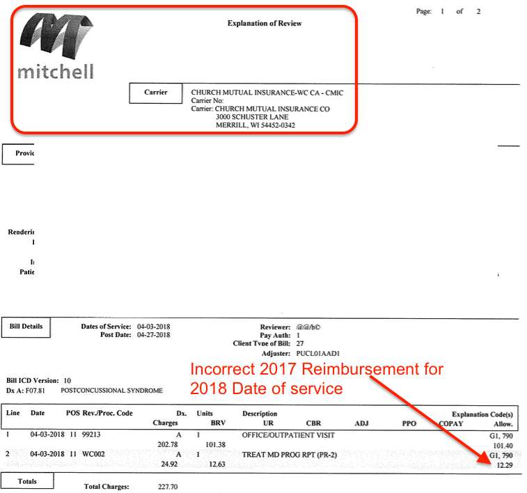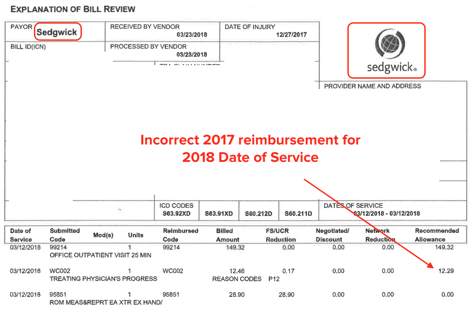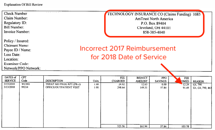 Yet, we see repeated instances of claims administrators applying incorrect, outdated rates. See the Explanations of Review (EOR) below for examples of incorrect WC002 reimbursement from: