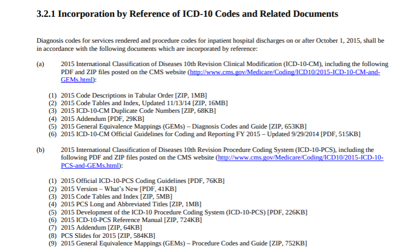When the DWC adopted the 2015 ICD-10, the exact files containing the ICD-10 as it was written in 2015 were incorporated by reference, as shown below in section 3.2.1 of the current Billing and Payment Guide: