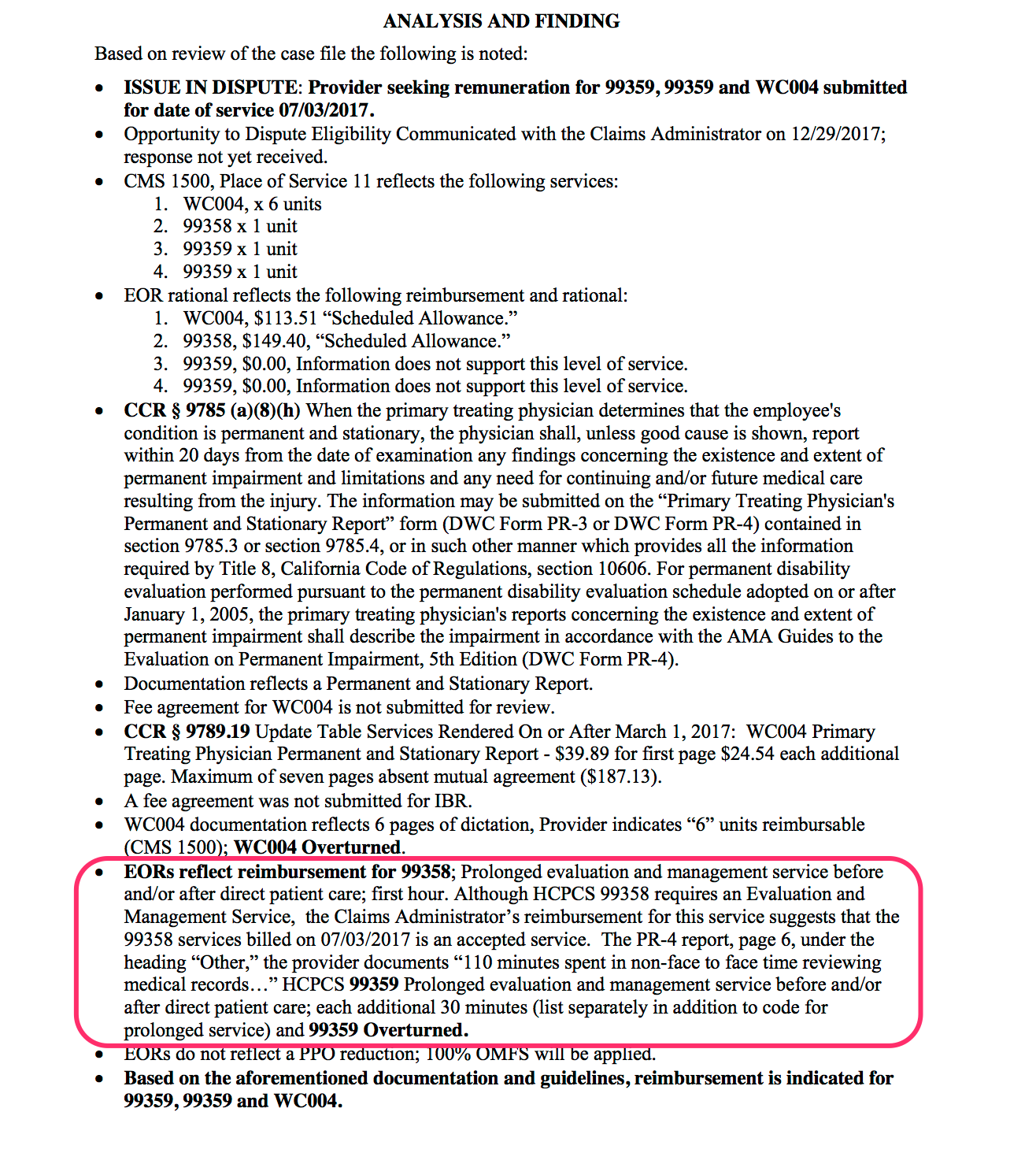 But calculating reimbursement for 99358 and 99359 is, to put it mildly, a doozy. It’s unfortunate — but not surprising — that some claims administrators and their bill reviews make mistakes.