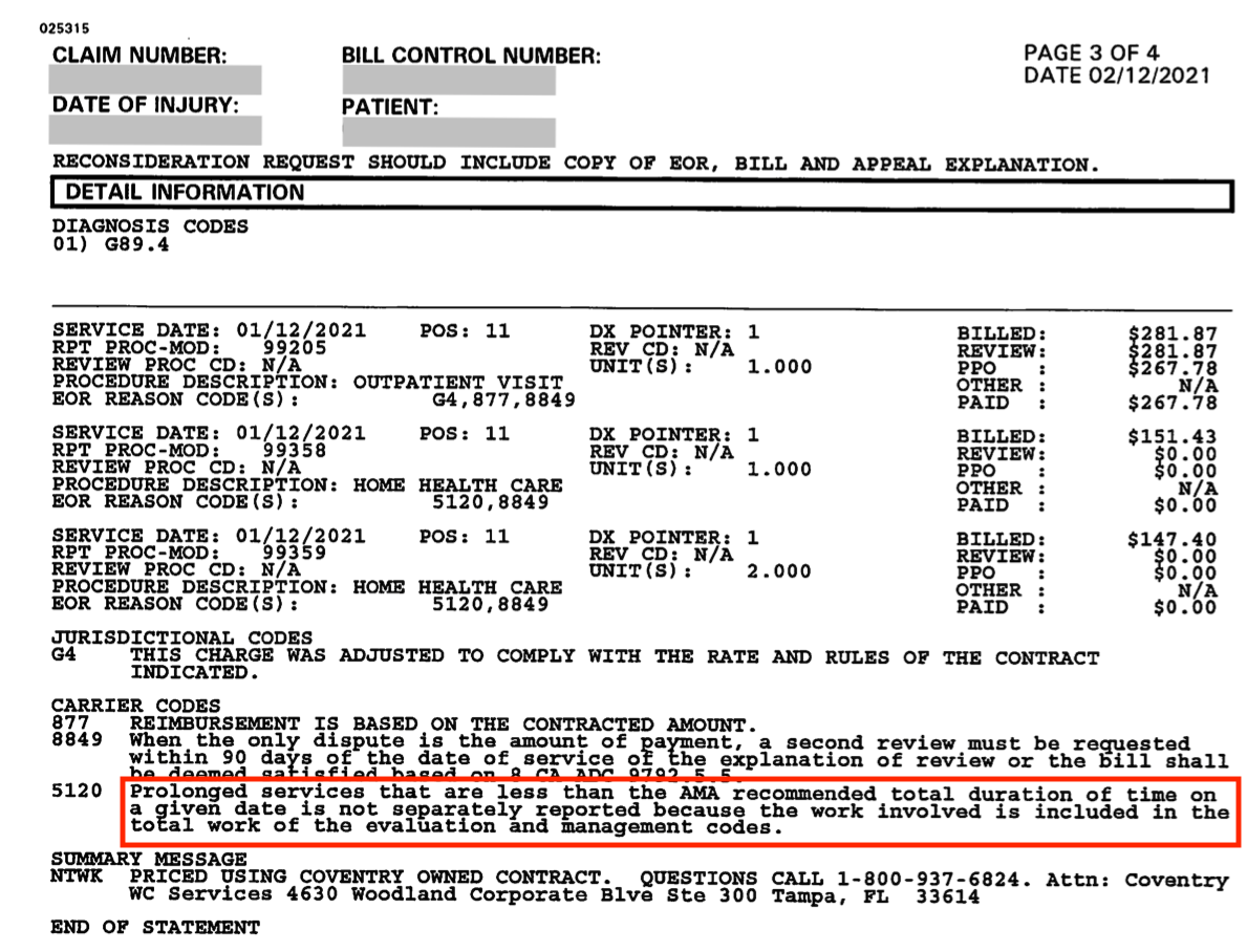 Travelers Insurance, as well as California’s State Compensation Insurance Fund (SCIF), each recently incorrectly denied one DaisyBill provider’s reimbursements for 99358 and 99359. This did not occur because Travelers and SCIF failed to understand the new rules. Rather, Travelers and SCIF applied the new rules to dates of service prior to March 1, when the rules went into effect.