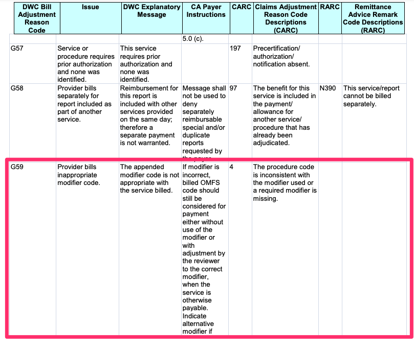 However, the DWC Medical Billing and Payment Guide specifically addresses CARC 4, stating: